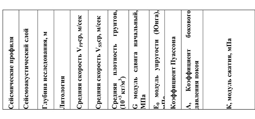 Ниже приведена таблица, которую мы предлагаем проектировщикам: геотехнические свойства грунтов основания на сейсмических частотах 0-30 Гц и микросмещениях 10-4-6%.