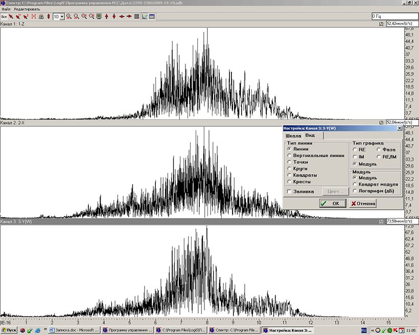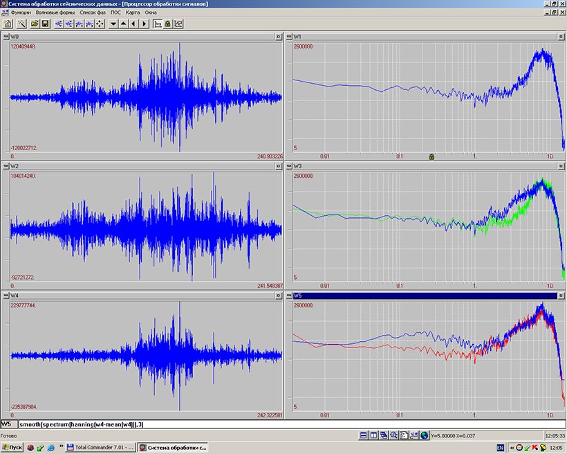 В области частот 6-10 Гц амплитуды всех компонент практически равны. В области частот 1-6 Гц компонента S-N незначительно превышает Z, а S-N равна W-E, в области частот 0,01-1 Гц компонента S-N немного меньше компоненты W-E. Соответственно, выводятся цифровые соотношения по реальной записи.