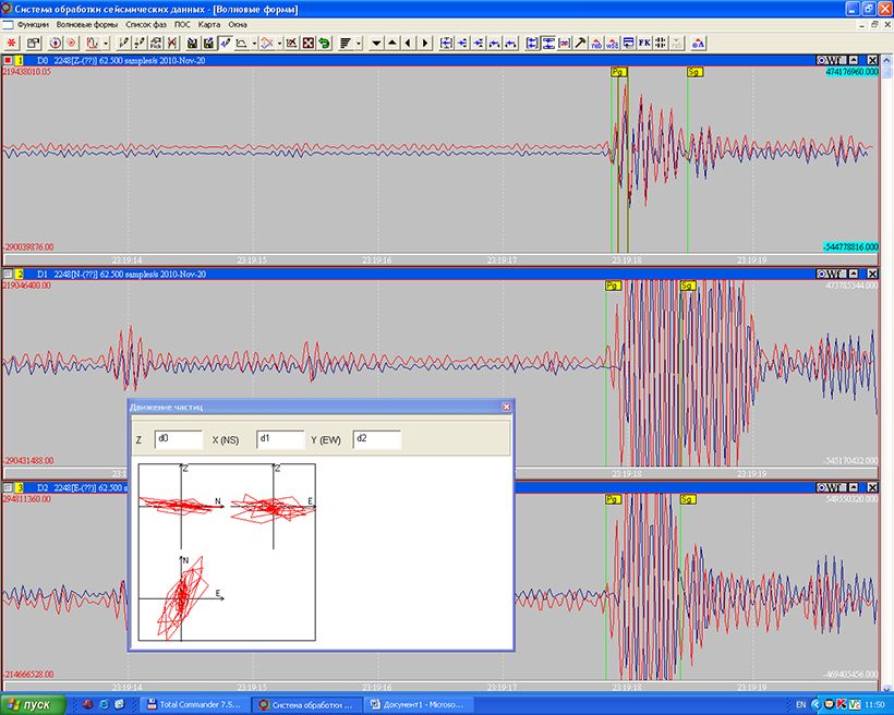 Ниже приведен пример регистрации сильно линейно-поляризованной волны. Поляризационный анализ помогает классифицировать событие как ближнее.