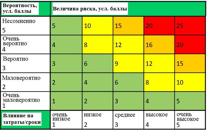 Таблица 1. Матрица для оценки рисков