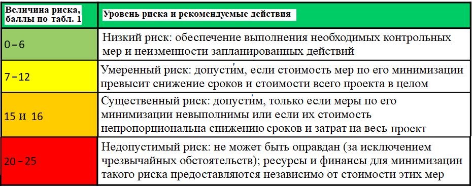 Таблица 2. Приоритетные действия для разных уровней риска