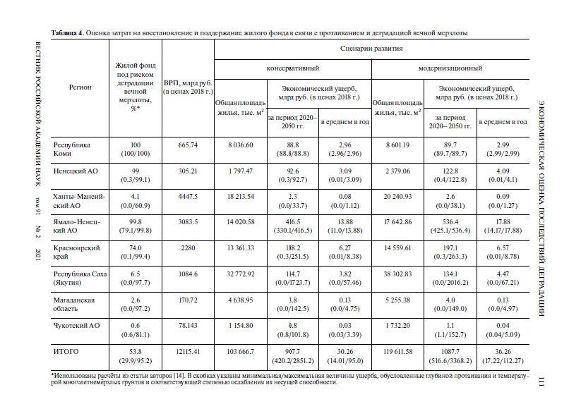 40% построек, по оценкам специалистов Министерства природных ресурсов РФ, деформированы. Ежегодный ущерб от таяния мерзлоты составляет 50-150 миллиардов рублей.