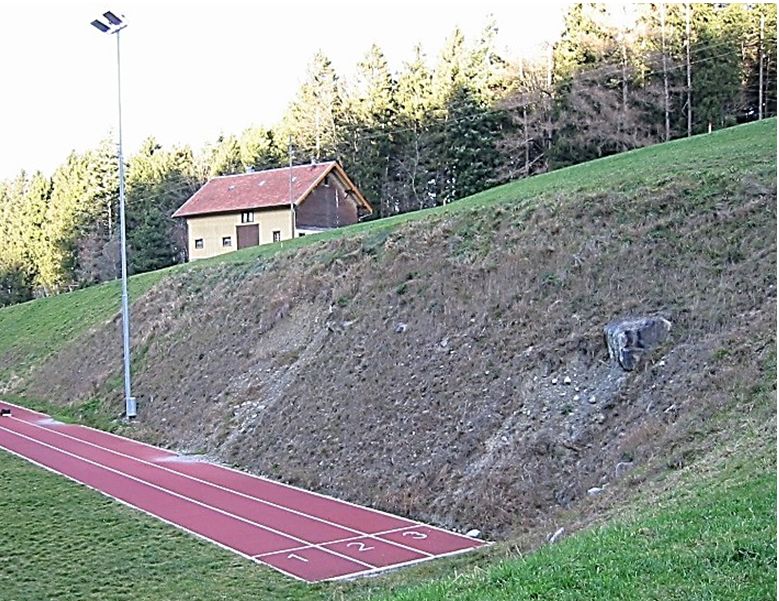 В 2000 году компанией Geobrugg AG были проведены первые тесты, а в 2003 году – расширенные испытания для оценки совместной работы производимых ею противоэрозионных матов (геоматов) и плетеных сеток из высокопрочной стальной проволоки для более крутых склонов (в кооперации с инженерно-технической фирмой Rьegge+Flum AG).