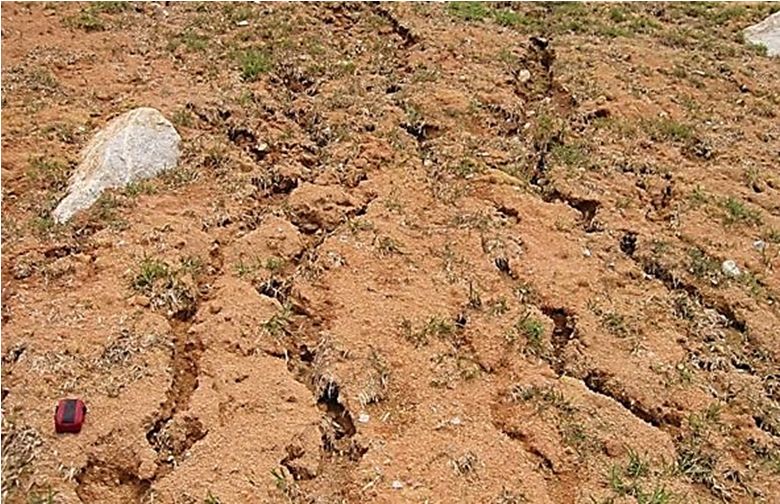Рис. 3. Каналы вторичной эрозии на откосе, образованные потоками стекающей воды