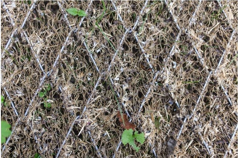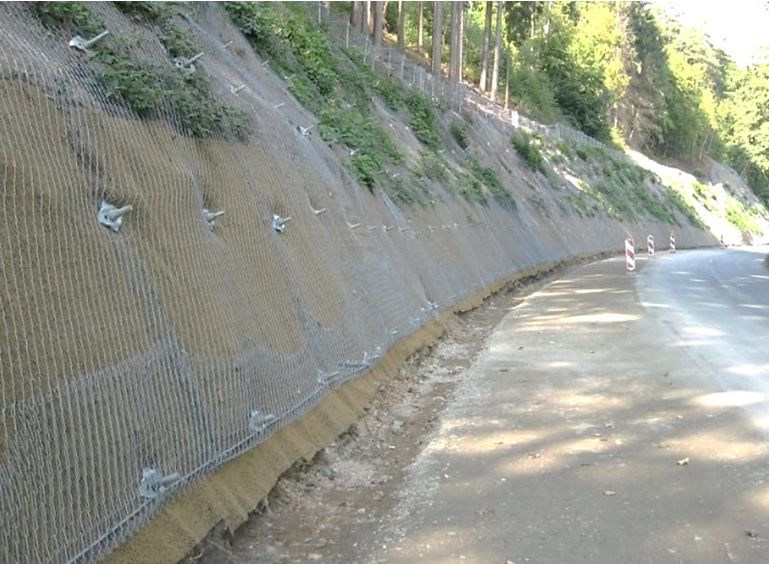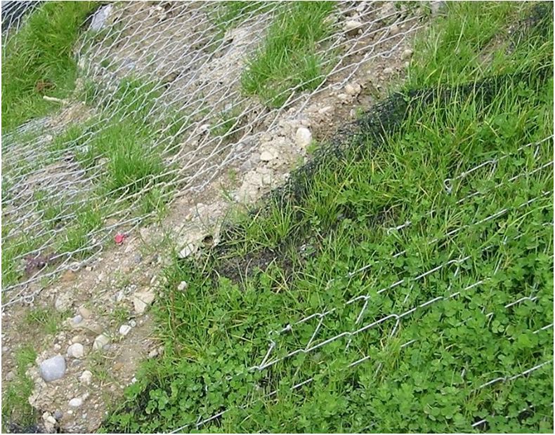 Приведенные примеры показывают, что использование комбинации противоэрозионных матов и плетеных сеток из высокопрочной стальной проволоки является вполне выполнимым и оправданным. Было обнаружено, что на склонах с неровной поверхностью геоматы не всегда плотно прилегают к подстилающим грунтам. Поэтому при гидропосеве семян трав очень важно, чтобы внутрь геомата было инъецировано достаточное количество мульчи (с длиной волокон менее 4 мм).