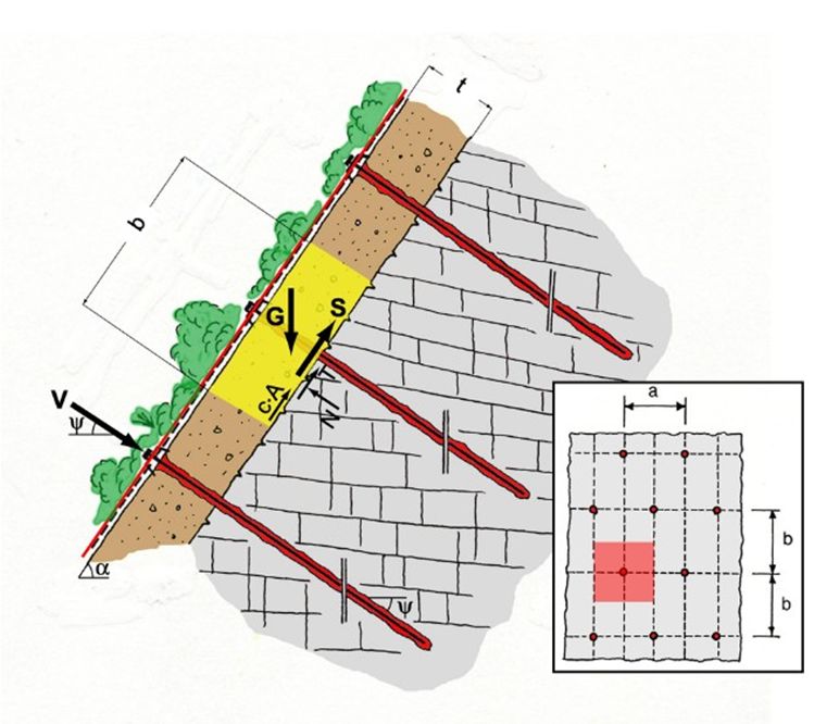 При укреплении откосов и склонов должна быть известна несущая способность как системы в целом, так и отдельных ее элементов (противоэрозионного мата, сетки, ее ячеек, креплений), чтобы можно было использовать моделирование и расчеты в специальных программах для осуществления необходимых проверок на деформации и смещения [2, 6].