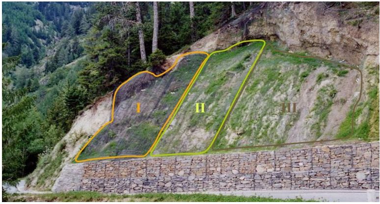 Рис. 7. Три смежных участка для испытаний геоматов (кантон Вале, Швейцария)