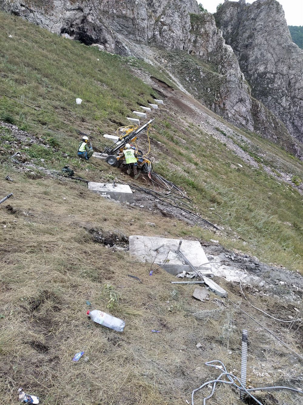 Рис. 6. Выполнение буровых работ на склоне