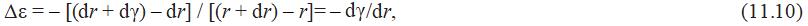 Если давление в рабочей камере вырастает на величину Δp, радиус камеры увеличивается на величину γc от своего начального значения ρ (то есть от его значения до приложения прироста давления в камере Δp). В грунте вне камеры общая цилиндрическая оболочка с начальным радиусом r выталкивается наружу до нового радиуса (r+γ), как показано на поперечном разрезе на рисунке 11.13, б. Аналогичным образом цилиндрическая оболочка в окружающем грунте немного дальше от оси камеры с начальным радиусом (r+dr) выталкивается до нового радиуса [(r+dr)+(γ+dγ)].