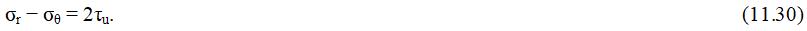 Критерий разрушения τ = σ‘ tg ϕ‘ выражается в терминах пиковой прочности ϕpeak (как в уравнениях 11.38–11.41). Сделав эти допущения, Хьюз с соавторами показали, что после появления пластичности на стенке скважины давление в камере прессиометра р и ее деформация εc связаны следующим соотношением: