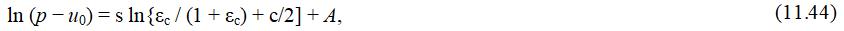 тогда значение s может быть выведено из уклона графика зависимости ln(p–u0) от ln(εc+c/2). Чтобы построить этот график, необходимо оценить значение константы c (см. рис. 11.18) для рассматриваемого песка.