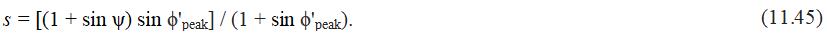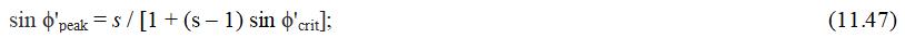 Зависимость «напряжение – дилатансия» (уравнение (11.43)), может использоваться для исключения либо  ϕpeak, либо ψ из уравнения (11.45), давая после значительных алгебраических преобразований следующие уравнения: