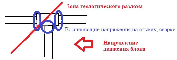 При проектировании магистральных трубопроводов в РФ практически не учитываются надвиговые движения (дрейф континентов). Проектировщики по-прежнему считают земную поверхность неподвижной, что приводит к неожиданным деформациям строительных сооружений (рис.4). Для решения данной проблемы целесообразным представляется применение комплекса мер: