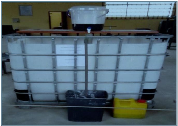 Эксперимент проводился в лабораторных условиях в специально разработанной установке. Испытываемый грунт высушивали на воздухе в течение 28 дней и помещали в испытательный резервуар, в качестве которого использовался прямоугольный контейнер средней вместимости для сыпучих и жидких материалов (intermediate bulk container, IBC). Удельный вес уплотненного и неуплотненного грунта составлял 13,8 и 12,3 кН/м3 соответственно.