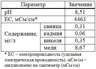 Некоторые средние физико-химические показатели свалочного фильтрата, использованного в эксперименте, представлены в таблице 1.