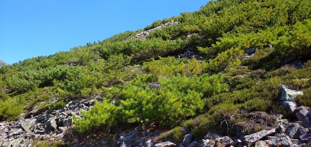 В подгольцовом поясе (рис. 4) характерными местообитаниями являются крупноглыбовые курумы склоновых кедровых стлаников и кашкарников с участием ольховника, а также фрагментарные участки лесной растительности, представленные лиственничниками кедровостланиковыми с участием ели и пихты в сочетании с крупноглыбовыми курумами. Следует отметить, что в августе 2022 года был отмечен высокий урожай шишек кедрового стланика, а в 2018 году их урожая не было.