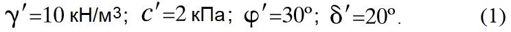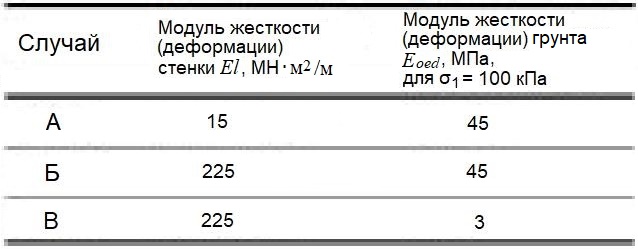 Таблица. Параметры жесткости подпорной стенки и грунта для трех рассмотренных случаев